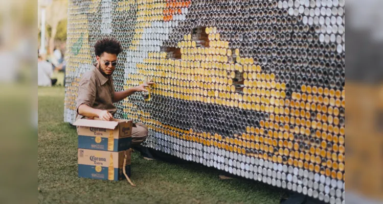 No último domingo (03), o artista apresentou mais uma obra de arte, um pouco diferente do comum: um mural produzido a partir de 6.800 garrafas de vidro retornáveis de Corona, cerveja da Ambev que tem Curitiba como cidade piloto da iniciativa, onde 100% das long necks que a marca distribui são retornáveis.